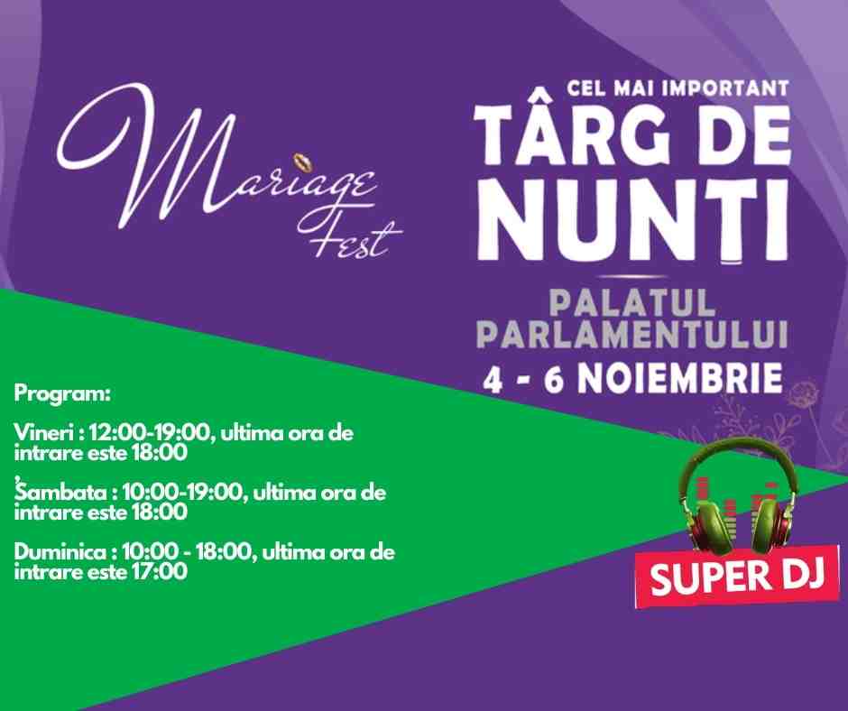 Oficial sezonul nuntilor 2023 incepe saptamana viitoare la Palatul Parlamentului, cand are loc cel mai mare targ de nunti din Romania, Mariage Fest. Este evenimentul de la care e bine sa nu lipsiti daca va casatoriti in 2023!