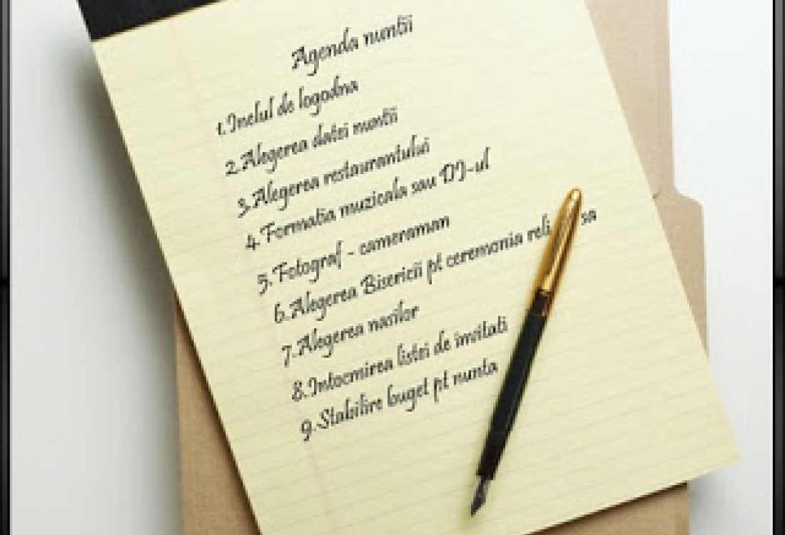 Multi dintre clientii nostri ne cer ajutor in planificarea nuntii .Deseori suntem intrebati care sunt pasii de urmat pentru a organiza o nunta .Am incercat sa redem mai jos o lista de verificare foarte detaliata . Aici veti gasi multe sfaturi utile dar si surse de inspiratie .